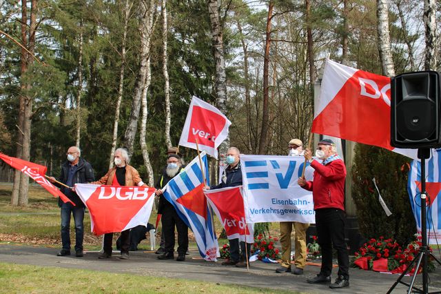 Als Vertreter des DGB N-O-Niedersachsen erinnerte Joachim Fährmann, Gewerkschaftssekretär der IG Metall Celle-Lüneburg, daran, dass die jungen sowjetischen Soldaten, die hier liegen, sicher auch hoffnungsvolle Pläne für ihr späteres Leben hatten. Ihm sei aber bei Besuchen in vielen Gedenkstätten aufgefallen, dass dazu im Gegensatz zu anderen Opfern überall geschwiegen werde.